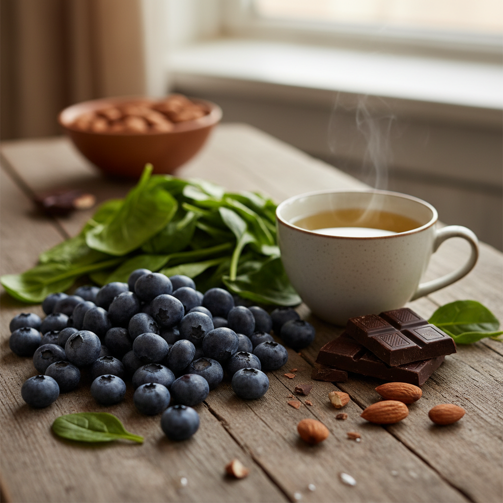 활성산소 제거에 좋은 항산화 식품 5가지로 노화와 염증을 줄이는 간단한 식단법 블루베리 녹차 토마토 견과류 다크초콜릿의 섭취 팁까지 활성산소 제거에 좋은 항산화 식품 5가지